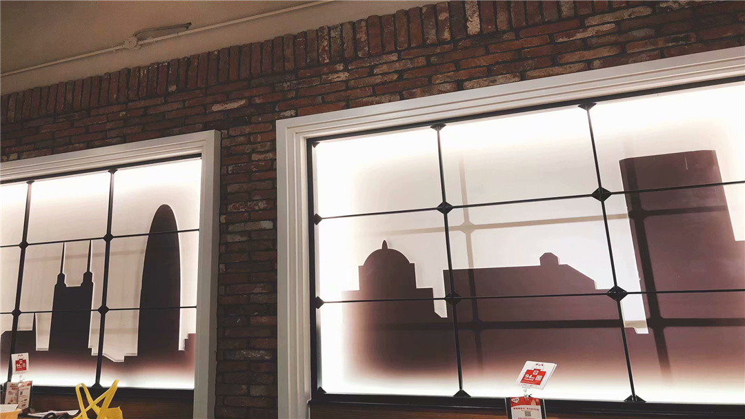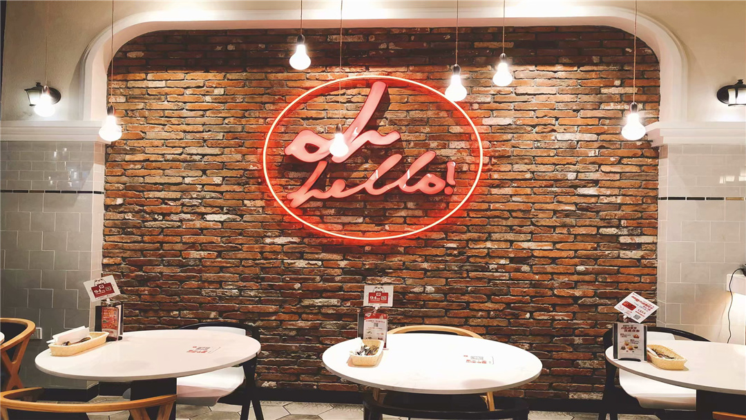 墻上映畫的是一些著名的地輿標志。濃厚木工的小資顏色、時髦風行的元素為必勝客展上瞭歡喜的佈景。