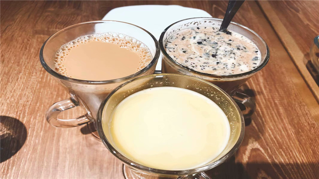 飲料必不成少,原味奶茶、臟臟黑糖奶茶和玉米汁,三杯紛歧樣的飲品,紛歧樣的甜。非要小包選出一杯,那非原味奶茶莫屬。甜品當然也是必不成少。